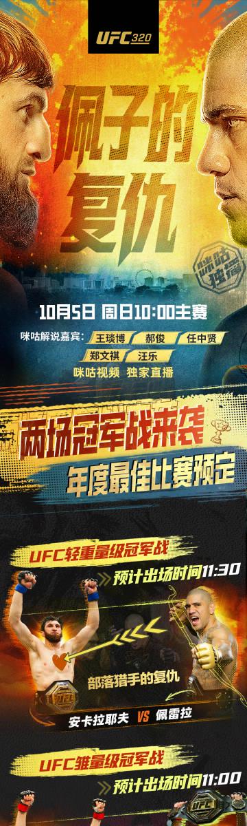 最近朋友圈又被UFC刷屏了吧?10月5日那场UFC320冠军战,光是看预告就让人热血沸腾——两位顶尖选手的王者之争,配上咪咕视频的独家直播,简直是格斗迷的狂欢夜!