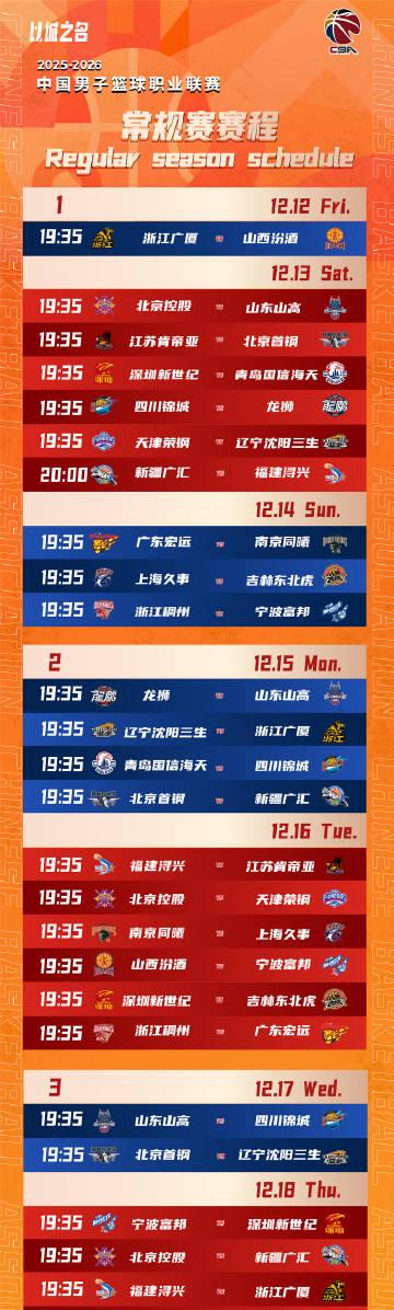 海外华人看CBA新赛季不再愁!12月12日开赛至4月24日,完整赛程攻略来了