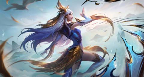 插画里刀妹的裙摆飘带浸着极光般的渐变色,让我想起大学时和室友挤在网吧的夜晚。下铺的广东仔总爱抢刀妹,每次开大前都要喊句粤语台词,显示器映得他眼镜片都泛着蓝光。现在他在多伦多当程序员,上周还抱怨看LPL直播总卡成PPT。