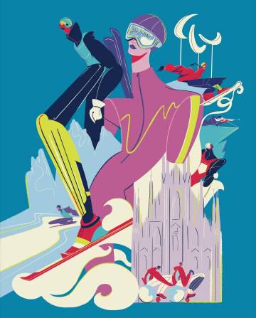 最近冬奥组委公布的这两张海报确实惊艳。设计师把阿尔卑斯山的雪线、多洛米蒂山的岩壁揉进了动态曲线里,竞技选手的身姿像在纸上飞驰。意大利人这次玩了个巧思:左边海报用冰蓝色调勾勒速滑运动员的残影,右边用暖橙色表现冰球碰撞的瞬间火花
