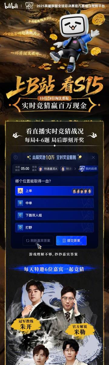 B站S15竞猜玩法明日上线!百万现金等你来拿,观赛还能赚钱