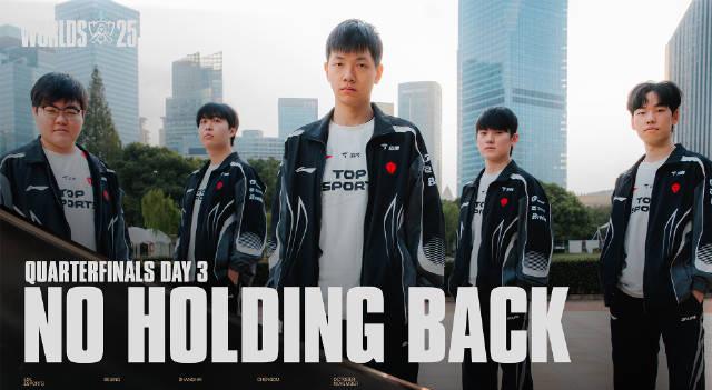 先说说昨天四分之一决赛第三日的宣传片,那句‘藏器待时久,出鞘惊世人’真的燃炸了!老玩家都懂,全球总决赛走到这一步,比的不仅是操作,更是心态和沉淀。就像JackeyLove说的:‘上一次夺冠已经很久很久了,所以我会珍惜每一次有机会去夺冠的时候。’ 这话听着就让人共鸣——谁不是一边怀念昔日荣光,一边咬牙抓住眼前的机会呢?
