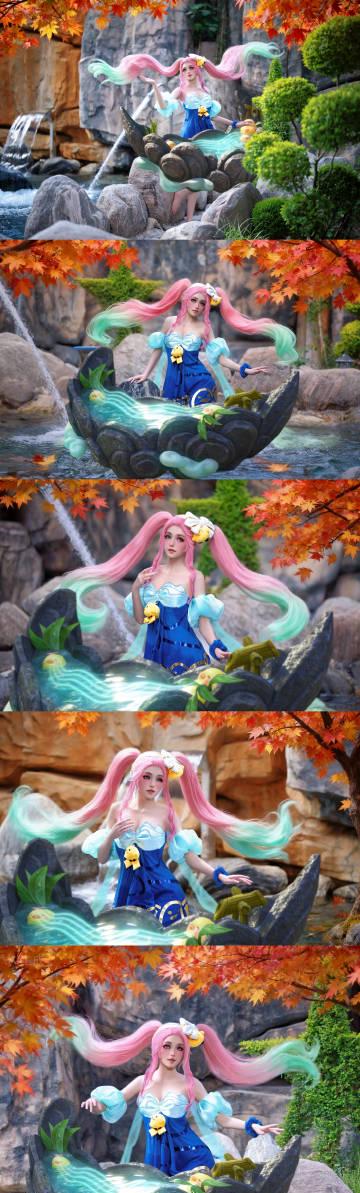 这一现象背后是英雄联盟IP影响力的持续扩张。2024年,拳头游戏官方数据显示,英雄联盟全球月活跃用户突破1.8亿,其中海外用户占比达72%。与此同时,中国同人创作者产出内容质量显著提升,从早期的简单插画发展到如今的完整剧情、高质量cosplay、互动游戏等多元形式。《莲华温泉娑娜》正是这一趋势的典型代表——由知名摄影师@Awei-鲍逝掌镜,@火龙果果工作室提供专业服装设计,将琴女娑娜与阿狸的莲华温泉场景完美融合,创造了极具东方美学的视觉盛宴。