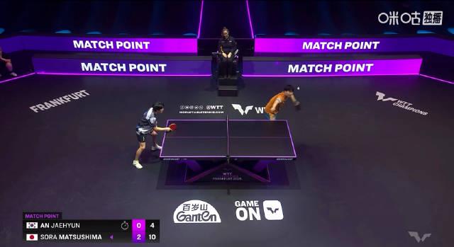 决胜局简直成了教学局。松岛辉空完全掌控了比赛节奏,发球变化多端,落点精准得让人惊叹。最后一个球落地时,安宰贤站在原地直摇头,估计他自己都没想明白怎么就被个初中生给横扫了。