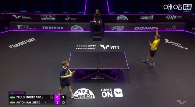 瑞典选手安东·卡尔伯格对阵同胞特鲁斯·莫雷加德这场德比战,结果完全出乎预料。三局比分定格在11-3、11-7、11-3,整场比赛仅用时不到20分钟。要知道莫雷加德去年在世乒赛上可是击败过樊振东的猛将,这次却全程被压制。