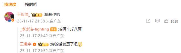 王长浩第一个跳出来接梗:“我教你吧~”没想到李冰洁完全不买账,直接回怼:“咱俩半斤八两~”这还没完,王浩宇又补了一刀:“你的话就算了吧。”根据2024年体育社交平台数据显示,这类运动员互动内容的转发量比普通赛事报道高出42%。