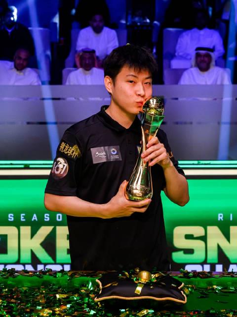 ❗️当决赛最后一颗黑球落袋,赵心童用力握紧了球杆。这场在沙特利雅得举行的斯诺克狂欢季锦标赛,他用5-2的比分击败了老将尼尔·罗伯逊,捧起了本赛季首座冠军奖杯。