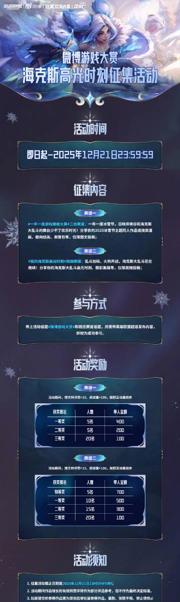 说到这个活动,确实值得好好聊聊。从即日起到12月21日,只要带上#微博游戏大赏#、#一年一度游戏爆梗大赛#这些话题标签,无论是你绘制的精美插画、制作的搞笑漫画,还是录制的海克斯大乱斗精彩操作,都能参与评选。获奖作品不仅能获得官方认证,还有丰厚的奖励等着你。但问题来了,海外玩家要怎么顺畅参与呢?