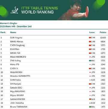 国乒最新世界排名出炉!王楚钦男单登顶,孙颖莎断层领先,双打格局有惊喜