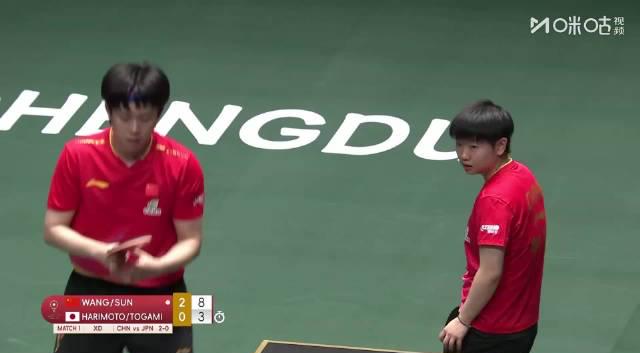 🔥 国乒这场赢得那叫一个干脆。混双打头阵,王楚钦和孙颖莎对上日本的户上隼辅和张本美和。三局比赛,比分是11比4、11比6、11比5。