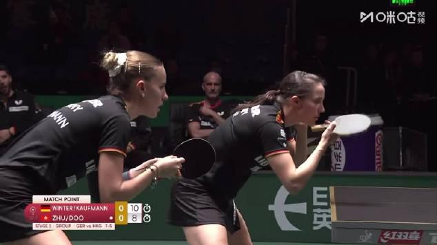 比赛的高潮在第四盘男双。德国队派出了杜达和邱党的组合,对阵黄镇廷/陈颢桦。德国组合第一局明显没进入状态,输得有点快。但从第二局开始,他们像是突然醒了,进攻线路打得又开又刁,连赢两局,把这关键的一分收入囊中。这一盘过后,胜利的天平已经明显向德国队倾斜了。