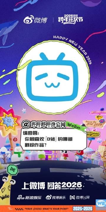 微博跨年狂欢开启!参与#请回答2026#答题赢好礼,B站年度剧综你最爱哪一部?