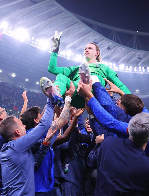 比赛常规时间就够刺激了。克瓦拉茨赫利亚先拔头筹,若日尼奥又用点球把比分扳平。1比1的比分一直僵持到终场哨响,得,最残酷的点球大战来了。