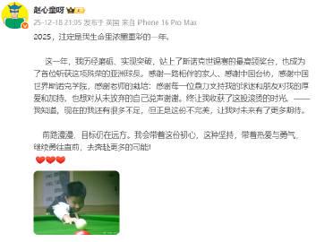 一个冠军,点燃了一个项目的希望。赵心童的2025,这“浓墨重彩”的一笔,画下了故事的起点,而非终点。接下来的旅程,更值得期待。