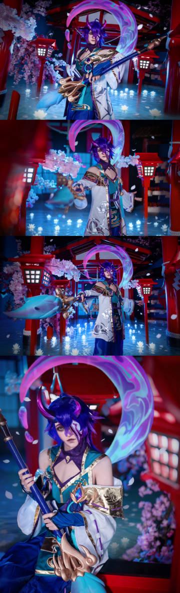 灵魂莲华阿卡丽与彗的皮肤设计,延续了该系列空灵、幽寂又充满生命力的美学风格。阿卡丽的服饰细节、彗的灵体形态,都为Cosplayer和画师提供了极富想象力的创作蓝本。摄影师@Awei-鲍逝与服装工作室@火龙果果的合作成果,正是这种美学从数字世界走向现实的高水准体现。这类高质量同人作品,反过来又丰富了皮肤的文化内涵,吸引了更多圈外人群的关注,形成了良性的文化循环。但若海外观众因技术壁垒无法欣赏到这些顶尖创作,无疑是整个文化生态的损失。